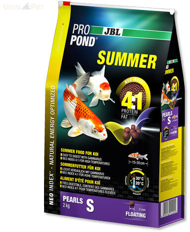 Termék részletekJBL ProPond Summer: Teljes értékű, úszó tavihal táplálék a nyári hónapokra. Optimális fehérje- és zsírtartalommal, a halak egészséges növekedéséért. JBL ProPond Summer – A tökéletes nyári táplálék tavi halaidnak! A JBL ProPond Summer egy speciálisan kifejlesztett, úszó haltáp, amely minden tavi halnak – különösen a koiknak – a legjobbat nyújtja a melegebb h