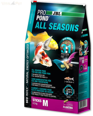 Termék részletekJBL ProPond All Seasons: Egész évben tápláló eledel koik és tavi halak számára. Kiegyensúlyozott tápanyagösszetétel, erősíti az immunrendszert. Ideális minden évszakban. JBL ProPond All Seasons – A tökéletes táplálék tavi haladnak egész évben A JBL ProPond All Seasons egy prémium minőségű, komplex haleleség, amely gondosan összeválogatott természetes összetevőkb