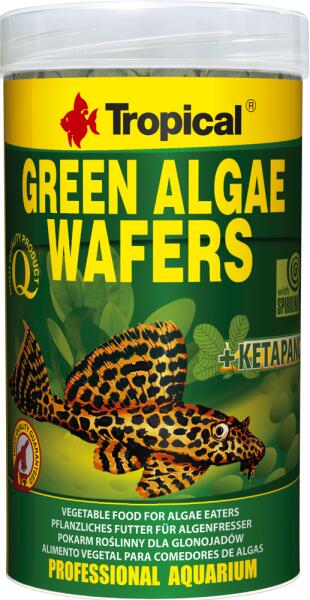 Termék részletekTropical Green Algae Wafers 1000ml - Termékleírás A Green Algae Waffers egy növényi eledel süllyedő ostya formájában, spirulina hozzáadásával a Loricariidae családba tartozó halak mindennapos etetésére, amelyek étrendjükben nagy arányban igényelnek növényi és algás összetevőket, pl. Sturisoma aureum, Pterygoplichthys pardalis, Panaque maccus stb. Összetétel Növényi te