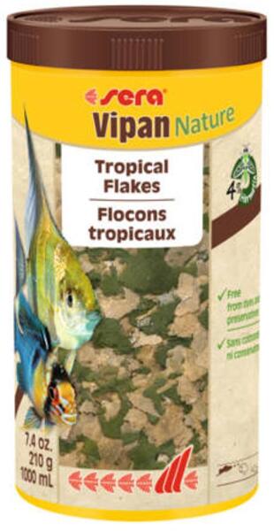 Termék részletekA sera Vipan Nature a színezékeket és tartósítószereket nem tartalmazó úszó pelyhekből álló élelmiszer a víz felszínén étkező összes díszhal számára. A rovarlisztet kiváló minőségű fehérjeforrásként tartalmazza, amely erőforrás-megtakarítást is jelent. A természetes összetevőket és prebiotikumokat tartalmazó kiegyensúlyozott összetétel lehetővé teszi a t