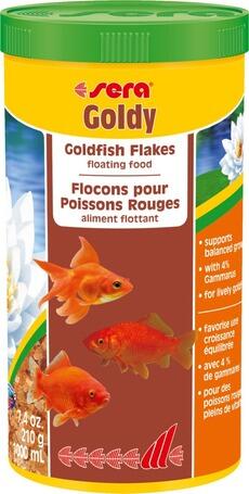 Termék részletek1000ml Sera Goldy lemezestáplálék valamennyi akváriumi és kerti tavi aranyhal számára. Teljes értékű eleség, napi táplálásra alkalmas.