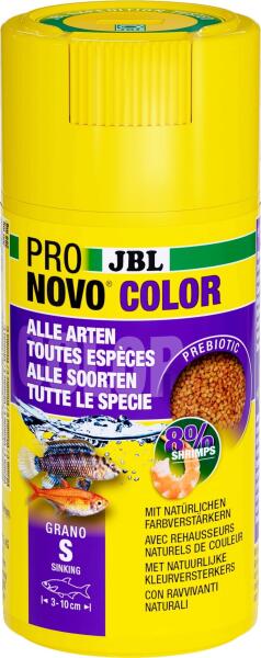 JBL PRONovo Fantail Grano M CLICK - Adagolófejjel ellátott dobozba kiszerelt, különleges minőségű granulált eleség 8-20 cm hosszú fátyolos és más, igényesebb aranyhal-fajták számára. Teljes értékű, süllyedő eleség