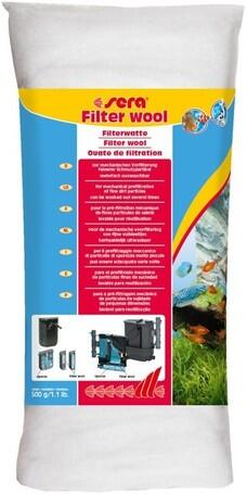500g A Sera szűrővatta szűrőanyag a mechanikus előszűréshez használható, stabil szálakból áll, melyek a finomabb szennyeződéseket hosszabb időtartamon keresztül fenntartják, anélkül, hogy összeragadnának, vagy összeesnének. A Sera szűrővatta többször kimosható. Édes- és tengervíz szűrésére is alkalmas. A szűrőkben található szivacsszűrők megfelelő kiegész