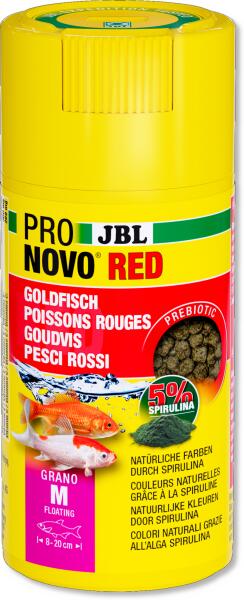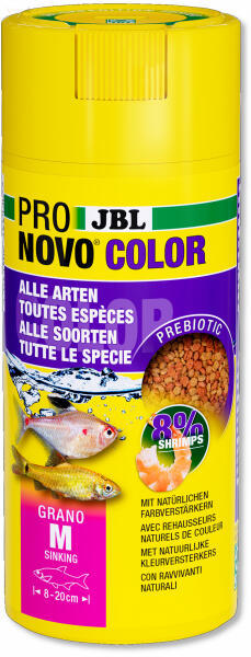 JBL PRONovo Fantail Grano S CLICK - Adagolófejjel ellátott dobozba kiszerelt, különleges minőségű granulált eleség kisebb, 3-10 cm hosszú fátyolos és más, igényesebb aranyhal-fajták számára. Teljes értékű, süllyedő eleség