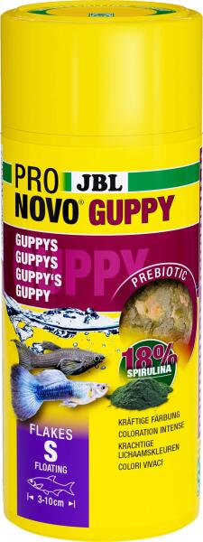 Főtáp Guppik és más elevenszűlők számára Úszó pelyhek Lazaccal, garnélarákkal és spirulinával Mesterséges adalékanyagok nélkül