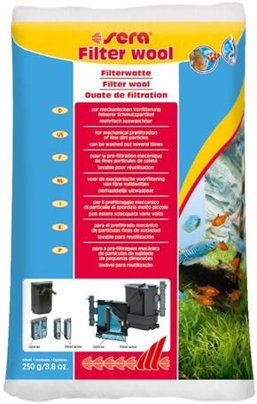 250g A Sera szűrővatta szűrőanyag a mechanikus előszűréshez használható, stabil szálakból áll, melyek a finomabb szennyeződéseket hosszabb időtartamon keresztül fenntartják, anélkül, hogy összeragadnának, vagy összeesnének. A Sera szűrővatta többször kimosható. Édes- és tengervíz szűrésére is alkalmas. A szűrőkben található szivacsszűrők megfelelő kiegész