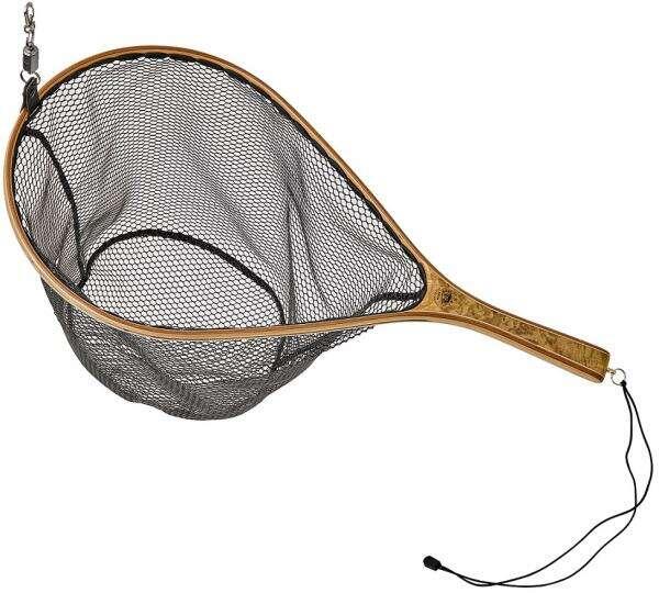 Minőségi merítőháló, nagyszerű kivitelben. A fő keret lakkozott fából készült, a háló gumírozott a maximális halvédelem érdekében. A merítőháló tartalmaz egy mágneses csipeszt is, amelynek köszönhetően könnyen rögzítheti mellényhez vagy övhöz. Hossza 68 cm, mélysége 35 cm, hálóméret 46x32 cm, hálószem 5x8 mm, súlya 337 g.