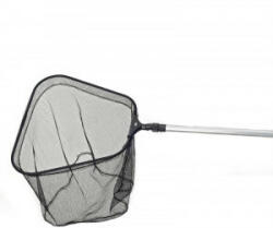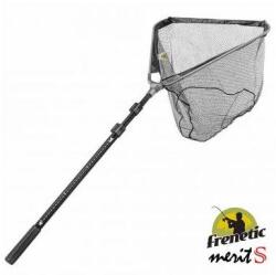 Teljesen új fejlesztés. Háromszög könnyűfém profilból készült ennek a merítőcsaládnak a nyele és szintén háromszög a fejrész. A két egység csatlakozása egy minőségi fémből álló nyakrész. A merítőnyélen gyorszárral végezzük a kinyitást és összecsukást. Ez is rendkívül kényelmes. Ezek után nem meglepő, hogy ritka szövésű gumírozott hálóval találkozun
