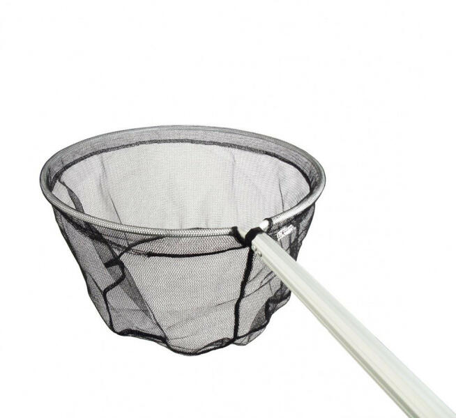 Kör alakú merítő háló, teleszkópos nyéllel. Halak tóból való kiemelésére és visszahelyezésére szolgál. A háló ritkább szövésének köszönhetően kisebb az esélye annak, hogy a halak megsérülnek. Háló átmérője: 40 cm Lyukméret: 3 mm Szín: fekete Nyél hossza: 80-140 cm Alumínium keret és nyél, a nnyélen gumiborítással.