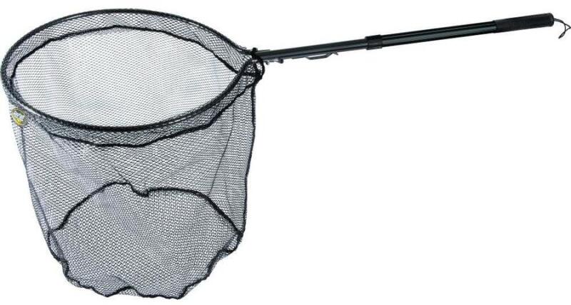 Merítőszák fekete hálóval, melynek anyaga gumi. Ez sokkal kiméletesebb a halakkal. Ráadásul könnyen tisztítható és gyorsan szárad, ezért nem kell küzdenünk a kellemetlen szagokkal. A nyél két részes és a 65-100cm es tartományban tetszőleges hosszra állítható. A nyélen egy akasztó szolgál arra, hogy a merítőt övre lehessen akasztani, ezzel ezzel szabadá tehető a kez