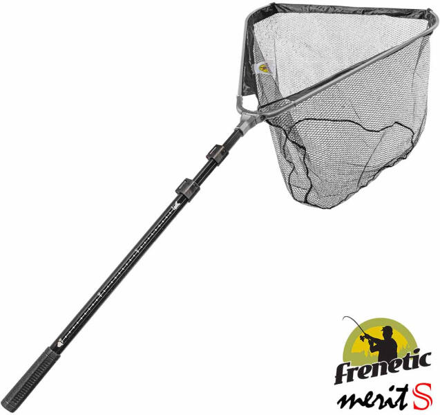 Megnevezés: Frenetic teleszkópos gyorszáras gumis merítő Hossz: 240 cm Szállitási-hossz: 70 cm Tagszám: 3 Szin: Fekete Gumirozott háló Fejméret: 70 x 70 cm Teljesen új fejlesztés. Háromszög könnyűfém profilból készült ennek a merítőcsaládnak a nyele és szintén háromszög a fejrész. A két egység csatlakozása egy minőségi fémből álló nyakrész. A merítőnyélen