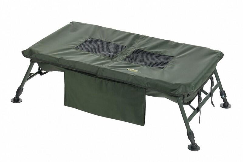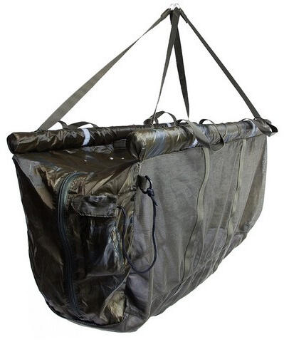 Sonik Bank-Tek lebegő mérlegelő és haltartó Ezek a halmérők kettős feladatot látnak el: használhatók halmérőként és rövid ideig a halat is tarthatjuk bennük. Az oldalak hálós kialakítása miatt gyorsan szárad és középen tartja a halat. A felső részek és a végrészek Bank-TEK terepmintás anyagból készültek, hogy végig nyugodtan tartsák a halat. Mindegyik fül dupla
