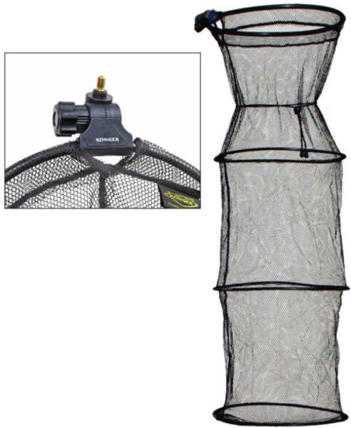 Sűrű szövésű, halkímélő hálóból készült, merev keretes haltartó szák. Az adapter fej tetszés szerint dönthető és a kívánt szögben stabilan rögzíthető. A strapabíró hálót 10 mm-es alumínium karikák merevítik, biztosítva ezáltal a zsákmány életben maradását, így a 3 méteres változatot, akár kisebb versenyen is használhatjuk.