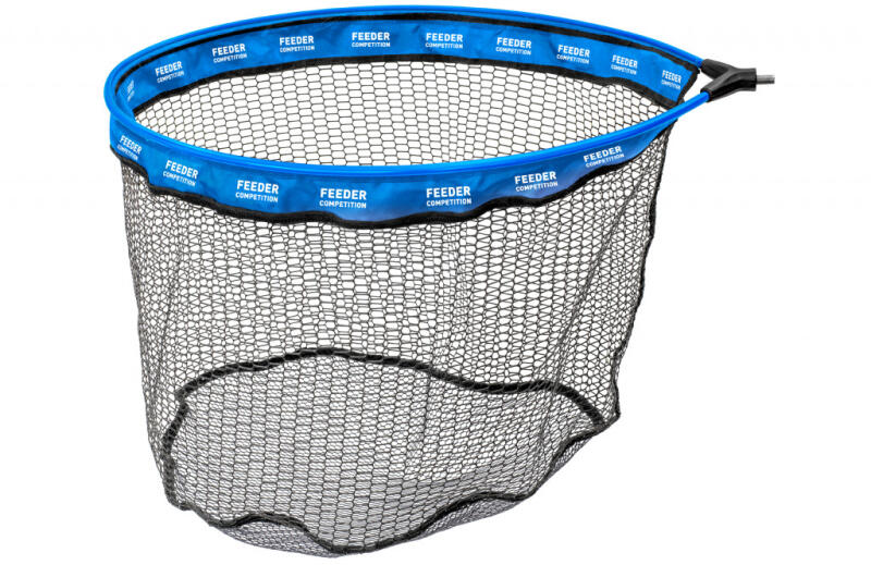 Modern vonalvezetés és és jól terhelhető, ellenálló kialakítás jellemzi ezt a Feeder Competition merítőháló fejet. A háló erős varrással egy olyan strapabíró anyaghoz lett rögzítve, mely az ovális kereten belül fut, így nem kell tartani annak elkopásától. A fém keret speciális profilja a hagyományos kör keresztmetszetnél jobban terhelhető. A háló gumírozott, íg