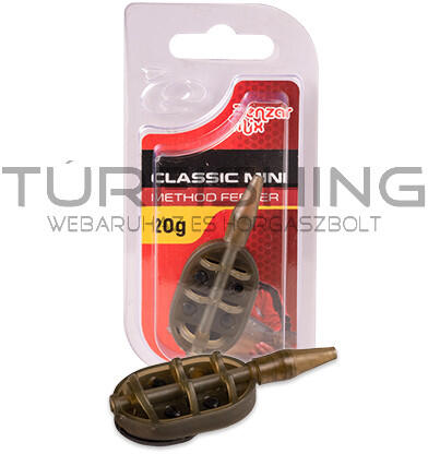 Benzár Classic Mini Method kosár A method módszer lelke sokak szerint a megfelelően elkészített etetőanyagban rejlik. Ebben igazuk is van, de a végszerelék részét képző kosárra is érdemes figyelmet fordítani. Az új Benzár Classic Mini method kosár akár a partközeli vagy kereső feederes pecákhoz is tökéletes alternatívát nyújt, méretskálájának köszönhetően. Bárme