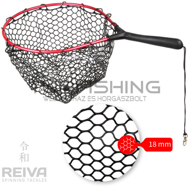 Ovális alakú merítőhálófej a REAXE sorozatból, könnyű, de erős fekete alumínium kerettel. A háló zöld színű, és minőségi varrással készül. Anyag puha, ezért gyengédebb a halakhoz, mint a gumi vagy a nylon hálók. Ráadásul a keret alsó része teljes egészben fekete szövettel borított, a tartósság növelése érdekében. Kialakítása illeszkedik REAXE sorozatunk zö