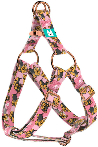 Yorki mintás belépős hám kutyádnak különböző méretekben. Öltöztesd kedvenced hazai gyártású egyedi belépős hámunkba, amit kérhettek trendi rose gold, mindig elegáns ezüst fém alkatrészekkel vagy könnyű műanyag csattal. Ahhoz, hogy ezeket a különleges mintákat meg tudjuk alkotni, műhelyünkben nyomtatjuk a hevedert. Minden terméket csak igény esetén gyártunk le, í