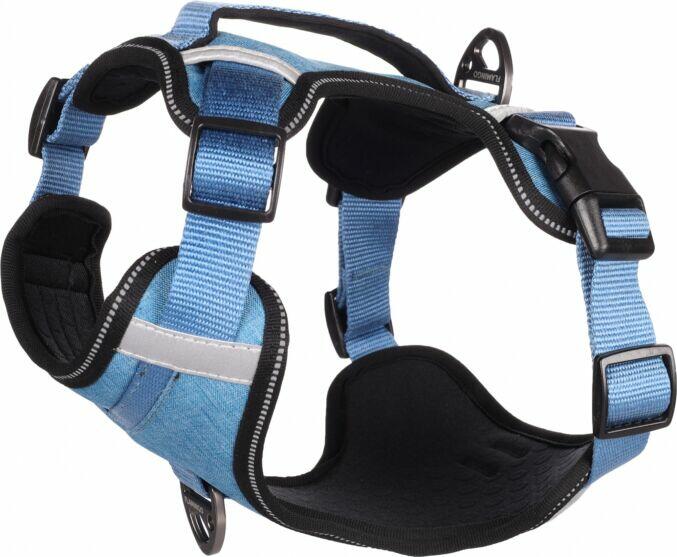 Jellemzők :- Állítható nyak- és haspántokkal. - Fényvisszaverő szegéllyel és csíkokkal a jobb láthatóságért. - Neoprén fogóval a kényelmesebb használatért. - D-gyűrűvel a hátrészen (lámpát vagy tasakot akaszthatnak rá) és a mellkason (a kutya extra irányíthatóságáért). - Extra kényelmes viselet a háti és a mellkasi részen található neoprén bélésnek kösz