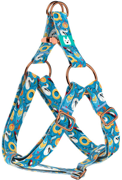 Balatoni nyár hangulatú, SUP és felfújható hattyú mintás belépős hám kutyádnak különböző méretekben. Öltöztesd kedvenced hazai gyártású egyedi belépős hámunkba, amit kérhettek trendi rose gold, mindig elegáns ezüst fém alkatrészekkel vagy könnyű műanyag csattal. Ahhoz, hogy ezeket a különleges mintákat meg tudjuk alkotni, műhelyünkben nyomtatjuk a hevedert. Min