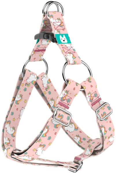 Egyszarvú mintás belépős hám kutyádnak különböző méretekben. Öltöztesd kedvenced hazai gyártású egyedi belépős hámunkba, amit kérhettek trendi rose gold, mindig elegáns ezüst fém alkatrészekkel vagy könnyű műanyag csattal. Ahhoz, hogy ezeket a különleges mintákat meg tudjuk alkotni, műhelyünkben nyomtatjuk a hevedert. Minden terméket csak igény esetén gyártunk l