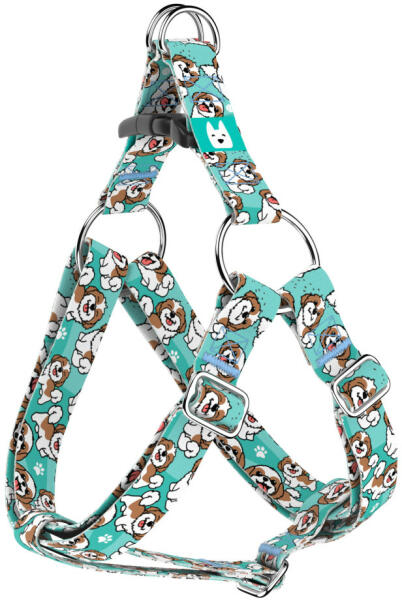 Cuki Si-cu kutya mintás belépős hám kutyádnak különböző méretekben. Öltöztesd kedvenced hazai gyártású egyedi belépős hámunkba, amit kérhettek trendi rose gold, mindig elegáns ezüst fém alkatrészekkel vagy könnyű műanyag csattal. Ahhoz, hogy ezeket a különleges mintákat meg tudjuk alkotni, műhelyünkben nyomtatjuk a hevedert. Minden terméket csak igény esetén gyár