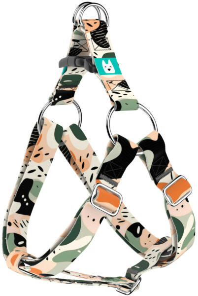 Absztrakt divatos terepmintás belépős hám kutyádnak különböző méretekben. Öltöztesd kedvenced hazai gyártású egyedi belépős hámunkba, amit kérhettek trendi rose gold, mindig elegáns ezüst fém alkatrészekkel vagy könnyű műanyag csattal. Ahhoz, hogy ezeket a különleges mintákat meg tudjuk alkotni, műhelyünkben nyomtatjuk a hevedert. Minden terméket csak igény esetén