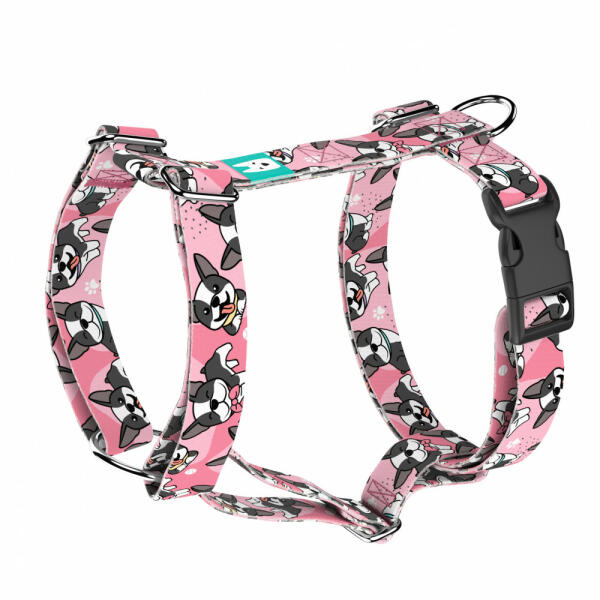 Cuki Boston Terrier mintás hám kutyádnak és macskádnak különböző méretekben. Öltöztesd kedvenced hazai gyártású egyedi hámunkba, amit kérhettek trendi rose gold, mindig elegáns ezüst fém alkatrészekkel vagy könnyű műanyag csattal. Ahhoz, hogy ezeket a különleges mintákat meg tudjuk alkotni, műhelyünkben nyomtatjuk a hevedert. Minden terméket csak igény esetén gyárt