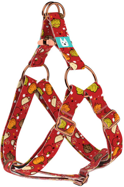 Cuki őszi mintás belépős hám kutyádnak különböző méretekben. Öltöztesd kedvenced hazai gyártású egyedi belépős hámunkba, amit kérhettek trendi rose gold, mindig elegáns ezüst fém alkatrészekkel vagy könnyű műanyag csattal. Ahhoz, hogy ezeket a különleges mintákat meg tudjuk alkotni, műhelyünkben nyomtatjuk a hevedert. Minden terméket csak igény esetén gyártunk l