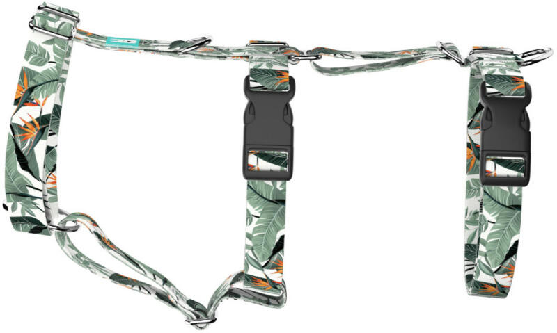 Trópusi levél mintás biztonsági hám kutyádnak és macskádnak különböző méretekben. Öltöztesd kedvenced hazai gyártású egyedi pánik vagyis szökés biztos hámunkba, amit kérhettek trendi rose gold, mindig elegáns ezüst fém alkatrészekkel vagy könnyű műanyag csattal. Ahhoz, hogy ezeket a különleges mintákat meg tudjuk alkotni, műhelyünkben nyomtatjuk a hevedert. Minde