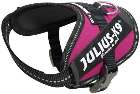 A Julius-K9 IDC sötétrózsaszín powerhám kutyáknak úgy került kifejlesztésre, hogy a lefelé mutató mellöv szinte törés nélkül továbbítja a pórázfeszülés által létrejött erővonalakat. A húzóerő itt nem a kutya nyakát terheli, hanem a mellkasizomzatát. Javasolt pórázok és nyakörvek a hám mellé