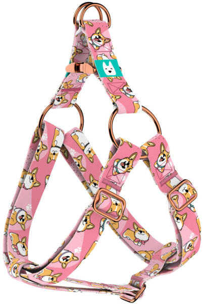 Cuki corgi kutya mintás belépős hám kutyádnak különböző méretekben. Öltöztesd kedvenced hazai gyártású egyedi belépős hámunkba, amit kérhettek trendi rose gold, mindig elegáns ezüst fém alkatrészekkel vagy könnyű műanyag csattal. Ahhoz, hogy ezeket a különleges mintákat meg tudjuk alkotni, műhelyünkben nyomtatjuk a hevedert. Minden terméket csak igény esetén gyár