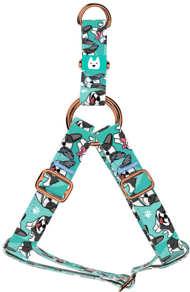 Cuki Boston Terrier mintás belépős hám kutyádnak különböző méretekben. Öltöztesd kedvenced hazai gyártású egyedi belépős hámunkba, amit kérhettek trendi rose gold, mindig elegáns ezüst fém alkatrészekkel vagy könnyű műanyag csattal. Ahhoz, hogy ezeket a különleges mintákat meg tudjuk alkotni, műhelyünkben nyomtatjuk a hevedert. Minden terméket csak igény esetén gy