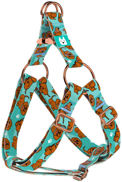 Vizsla mintás belépős hám kutyádnak különböző méretekben. Öltöztesd kedvenced hazai gyártású egyedi belépős hámunkba, amit kérhettek trendi rose gold, mindig elegáns ezüst fém alkatrészekkel vagy könnyű műanyag csattal. Ahhoz, hogy ezeket a különleges mintákat meg tudjuk alkotni, műhelyünkben nyomtatjuk a hevedert. Minden terméket csak igény esetén gyártunk le,