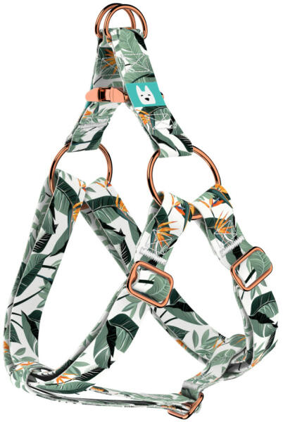 Trópusi levél mintás belépős hám kutyádnak különböző méretekben. Öltöztesd kedvenced hazai gyártású egyedi belépős hámunkba, amit kérhettek trendi rose gold, mindig elegáns ezüst fém alkatrészekkel vagy könnyű műanyag csattal. Ahhoz, hogy ezeket a különleges mintákat meg tudjuk alkotni, műhelyünkben nyomtatjuk a hevedert. Minden terméket csak igény esetén gyárt