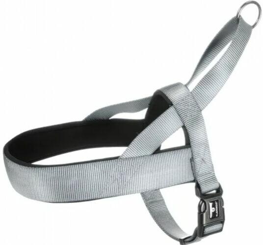 Szürke színű hám kutyák részére több méretben. Jellemzők: - Anyaga: nejlon puha neoprén béléssel az oldalán. - Folyamatosan állítható. - Hevedercsattal. - Fényes sötétszürke fémgyűrű a póráznak. - Fogantyúval felszerelt, közel tudja tartani kutyáját.