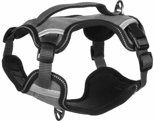 Jellemzők: - Állítható nyak- és haspántokkal. - Fényvisszaverő szegéllyel és csíkokkal a jobb láthatóságért. - Neoprén fogóval a kényelmesebb használatért. - D-gyűrűvel a hátrészen (lámpát vagy tasakot akaszthatnak rá) és a mellkason (a kutya extra irányíthatóságáért). - Extra kényelmes viselet a háti és a mellkasi részen található neoprén bélésnek kösz