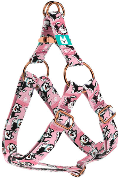 Cuki szánhúzó kutya mintás belépős hám kutyádnak különböző méretekben. Öltöztesd kedvenced hazai gyártású egyedi belépős hámunkba, amit kérhettek trendi rose gold, mindig elegáns ezüst fém alkatrészekkel vagy könnyű műanyag csattal. Ahhoz, hogy ezeket a különleges mintákat meg tudjuk alkotni, műhelyünkben nyomtatjuk a hevedert. Minden terméket csak igény esetén