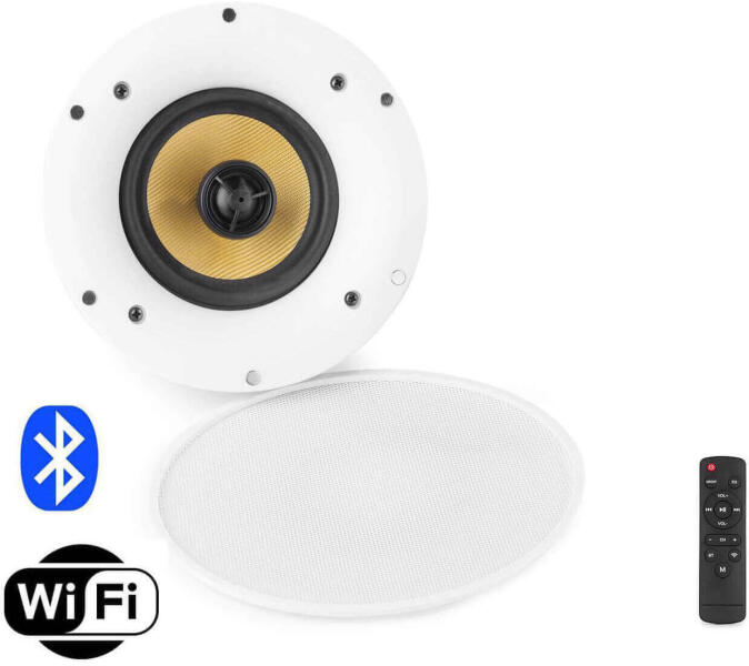 Műszaki adatok: - Típus: Power Dynamics WCS80 - 2 utas - Hangszóró: 8 (20 cm) - Beépített erősítővel rendelkezik - Kevlár hangszóró membrán - Beépített bluetooth + Wifi vevő - 12V adapter tartozék - RMS Teljesítmény: 70w - Max Teljesítmény: 140w - Frekvencia: 40 Hz - 20.000 Hz - Érzékenység: 92 dB - Masszív műanyag keret - Mágneses fehér fém védőrács - Álmennyezetb