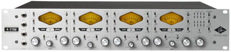 Négy, állítható karakterű előfok 1176 stílusú kompresszorokkal és beépített A/D konverterrel!Az Universal Audio 4-710d Twin Finity egy ...
