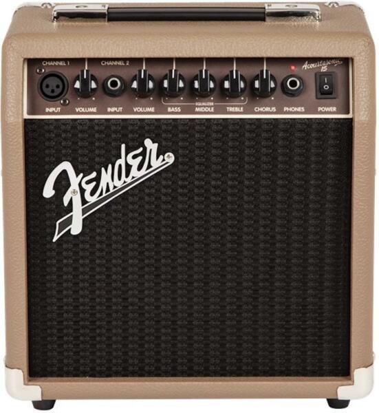 Fender Acoustasonic 15, akusztikus gitár kombó Acoustasonic széria, 15 watt-os akusztikus gitárkombó Részletes leírás: Acoustasonic széria 15 W teljesítmény 2 csatorna (Instrument és Microphone) 1 db 6" Fender Special Design hangszóró Volume, Bass, Middle, Treble, Chorus szabályzók 2 db 6,3 mm jack bemenet Méret: 284 x 181 x 292 mm Súly: 4,76 kg Szín: barna