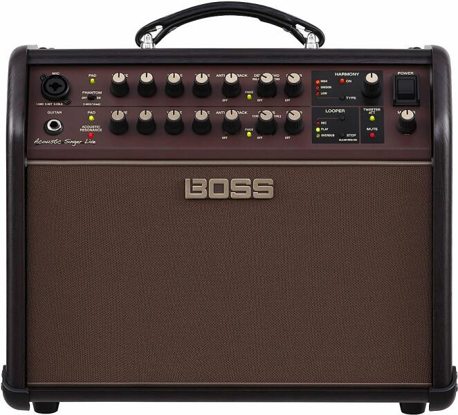 60 Watt akusztikus gitár kombó, énekeffekt, looper Teljesítmény: 60 Watt Hangszóró: 1x 16 cm (6,5") mély, 1x 2.5 cm (1") magas Csatornák száma: 2 (mikrofon, gitár) Vezérlők: mikrofon csatorna: PAD (érzékenyés) kapcsoló, fantom táp kapcsoló, hangerő, mély, közép, magas, gerjedéscsökkentés, fázis kapcsoló, visszhang, zengető, harmónia vezérlők, gitár csatorna: PAD (