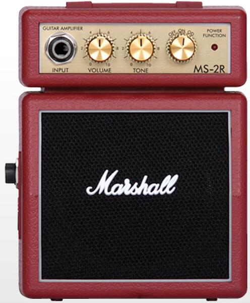 MARSHALL MS2R Micro Gitárerősítő Miniatű r gitár erősítő 1 Watt teljesítmény Hangszín és hangerő szabályzó Fejhallgató jack-kimenet 140 x 110 x 60 mm 0,34 kg