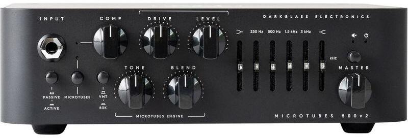 500 wattos basszusgitárerősítő fej, USB 1 csatorna Teljesítmény: 500 W Nagy hatékonyságú, egyedi tervezésű D-osztályú végerősítő Integrált microtube torzítás Hangszórószimuláció fejhallgatóhoz és szimmetrikus XLR DI kimenethez Egygombos kompresszor Új, alacsony zajszintű grafikus equalizer Vezérlők: Kompresszor, Drive, Level, Mod, Blend, 6 sávos grafikus EQ, Master K