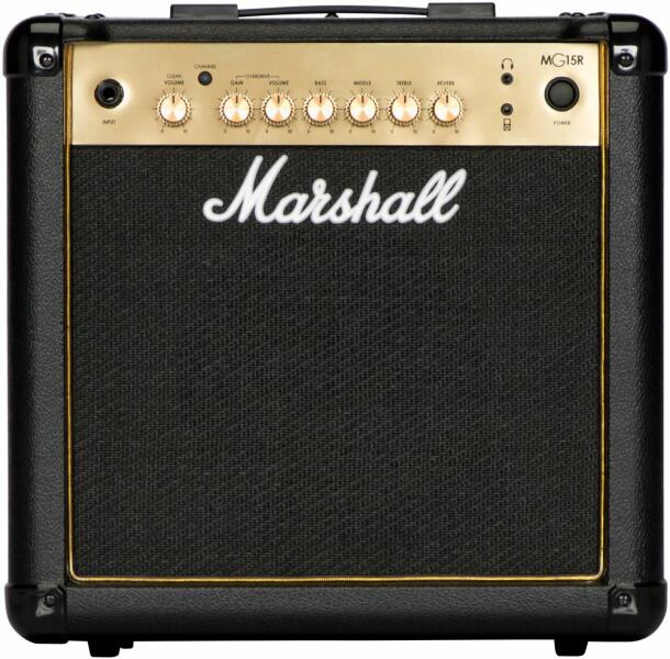 Marshall MG15GR gitárerősítő kombó Teljesítmény: 15 Watt Hangszóró: 8" Custom speakers Csatornák száma: 2 (tiszta és Overdrive) + Reverb (zengető)