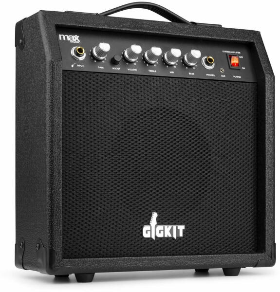 Műszaki adatok: - Bemeneti csatlakozók: 3,5 mm-es jack, 6,3 mm-es jack - Kimeneti csatlakozások: 6,3 mm-es jack - RMS teljesítmény: 20W - Tápegység: 100-240VAC 50/60Hz - Max teljesítmény: 40W - Basszus, közép- és magas hangszín szabályozók - Fejhallgató-csatlakozó a csendes játékhoz vagy gyakorláshoz - Aux bemenet MP3 zeneszámok lejátszásához - Szín: Fekete - Méret: 130 x