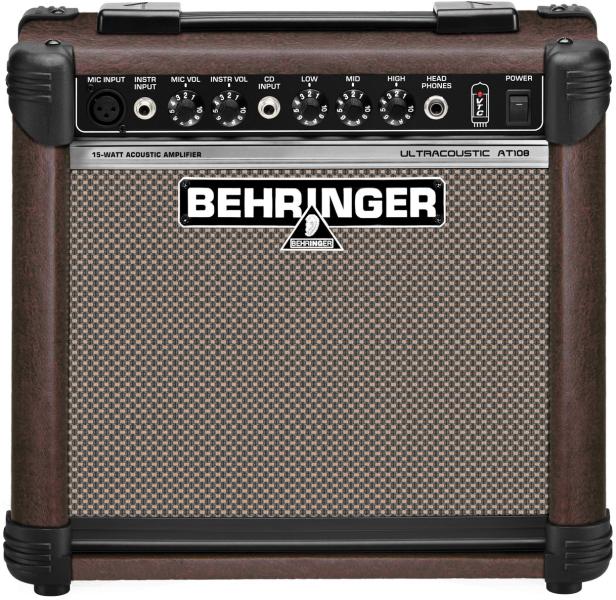 Gitár erősítő, BEHRINGER AT108 15 W RMS 3 sávos EQ 2 csatornás 15 W-os Combo mindkét csatornája saját hangszín szabályozással rendelkezik lefedi a legkülönbözőbb hangzásstílusokat. Jellemzők: 2 csatorna (Clean és Overdrive), lábbal kapcsolható · három sávos hangszín szabályozás kontúr szabályozóval (OD) · CD-bemenet emulált fejhallgató kimenet/ Lineout · FX-Level