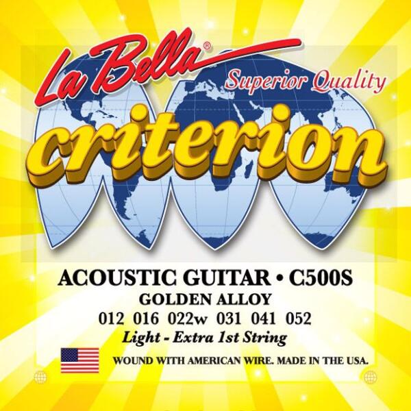 LaBella C500S 6-Húros Akusztikus Gitár Húrkészlet Golden Alloy Light, 012-052 LaBella C500S Kiváló minőségű Akusztikus Gitár Húrkészlet 6 húros szett Acél: . 012, . 016 Arany ötvözet: 022, . 031, . 041, . 052 Light Made in USA