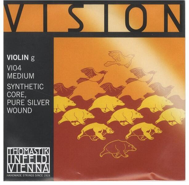 THOMASTIK Infeld Vision VI04 Hegedű "G" Húr Vision Synthetic Core Műanyag maggal, hangzásban fókuszált, tiszta és nyitott Acél több réteg ónozott bevonat húrok Ezüsttel Körbefont Sok Acél húrral kombinálható Levehető golyó "G" tiszta-ezüst bevonat 4/4-Méret Fesz ltség: medium 4,7kg/10.3lbs, strong 4.8kg/10.6lbs Különböző Méretekben Rendelhető! Válasz tható méretek: