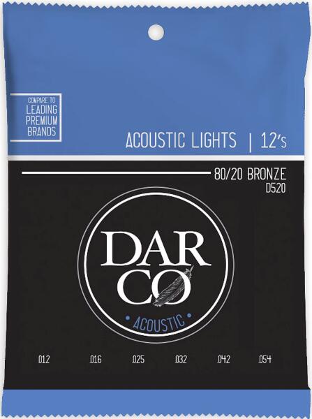 DARCO D520 Bronze, Light 12-54 Akusztikus Gitárhúr Készlet 80/20 Bronze, Light Méretek: . 012 . 016 . 025 . 032 . 042 . 054