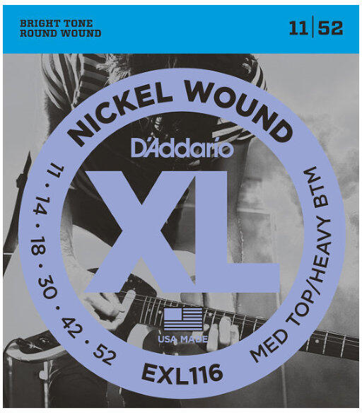 EXLXL Nickel Wound, D'Addario's most popular electric guitar strings, are precision wound with nickelplated steel onto a carefully drawn, hexagonally shaped, ...